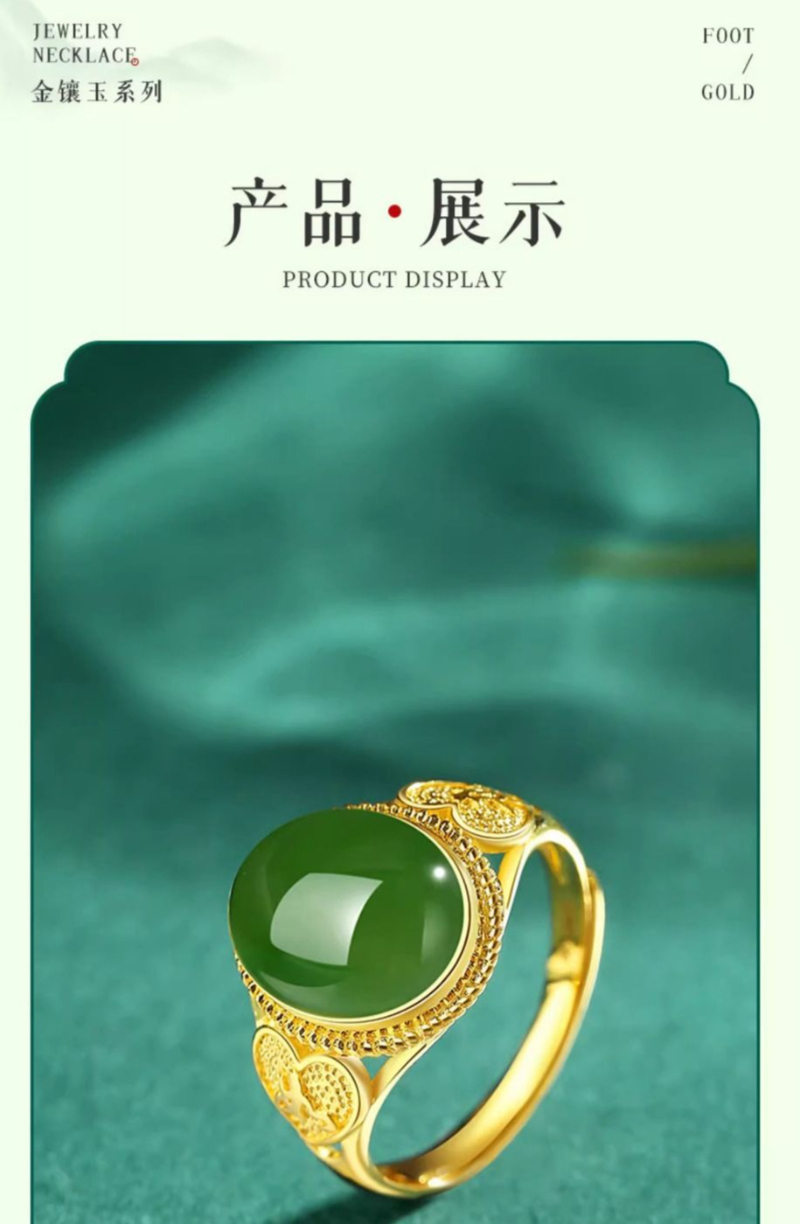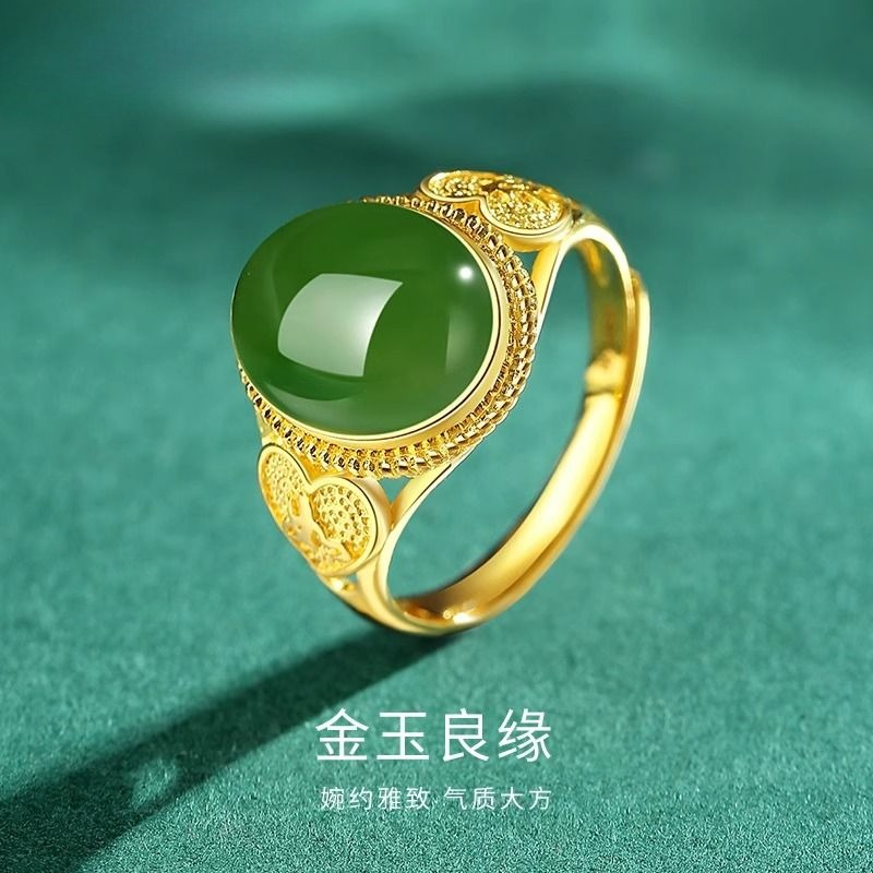 Quality Materials: Made with authentic Hetian jade and full gold jasper, this ring is designed to last a lifetime.