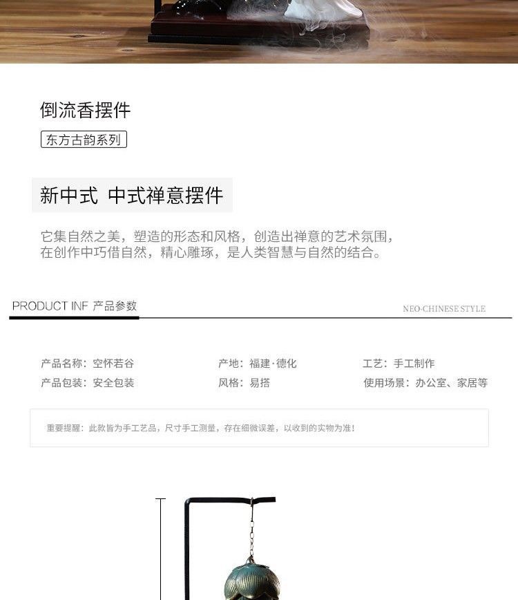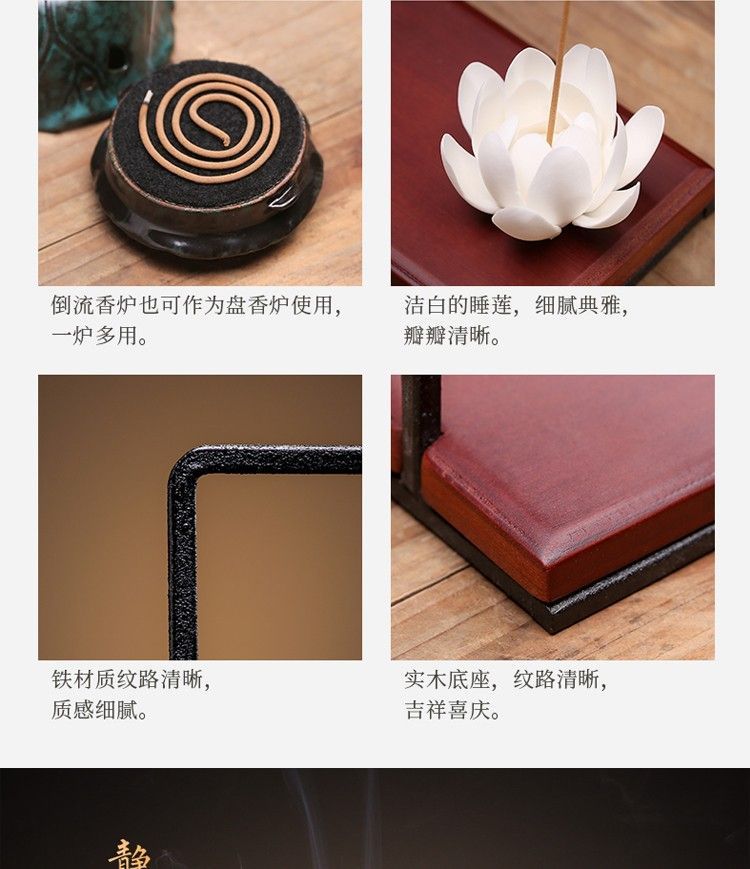 Backflow incense burner New Chinese-style home living room porch office Zen soft decoration creative decoration Backflow incense Lucky Gallery