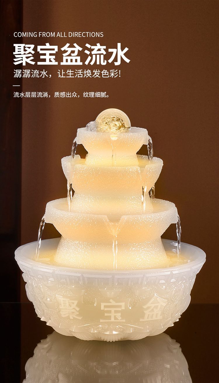 Bafanglai Cai Flowing Water Ornament Living Room Feng Shui Wheel Circulating Water Small Fountain Light Luxury Jade Ornament Opening Gift Lucky Gallery