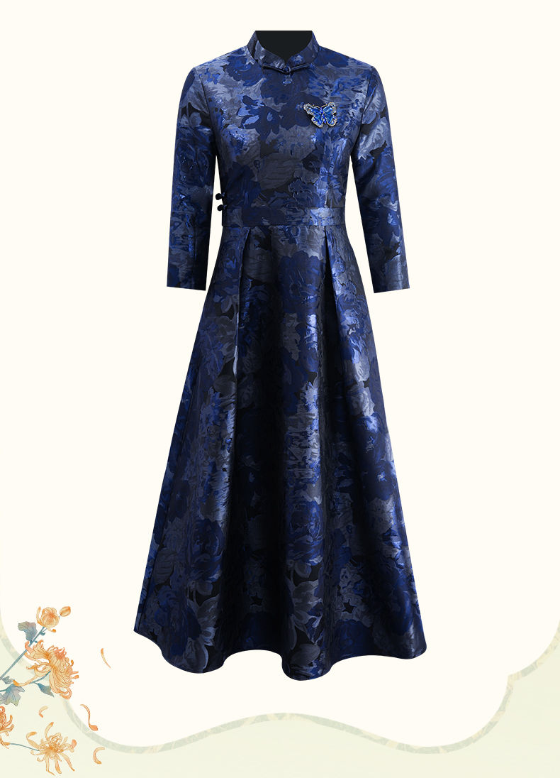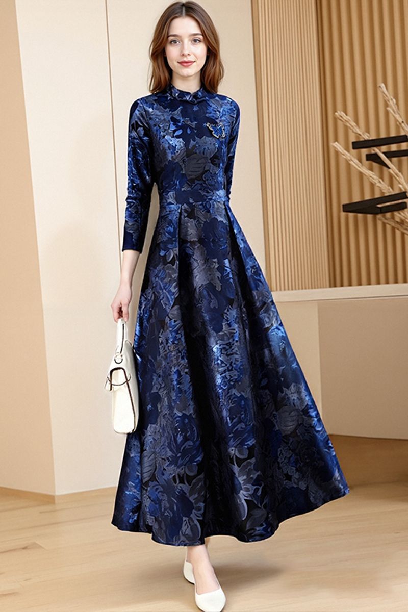 Chinese style temperament long fluffy cheongsam dress autumn new jacquard elegant retro mother dress
