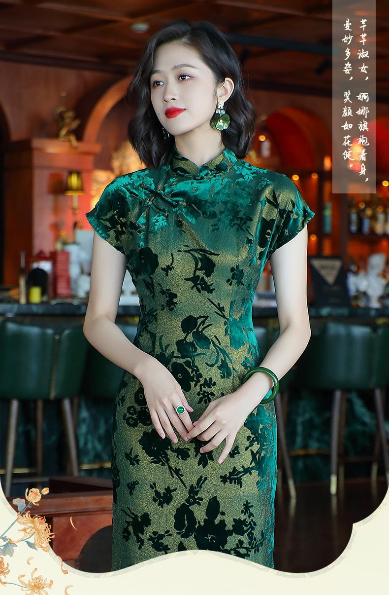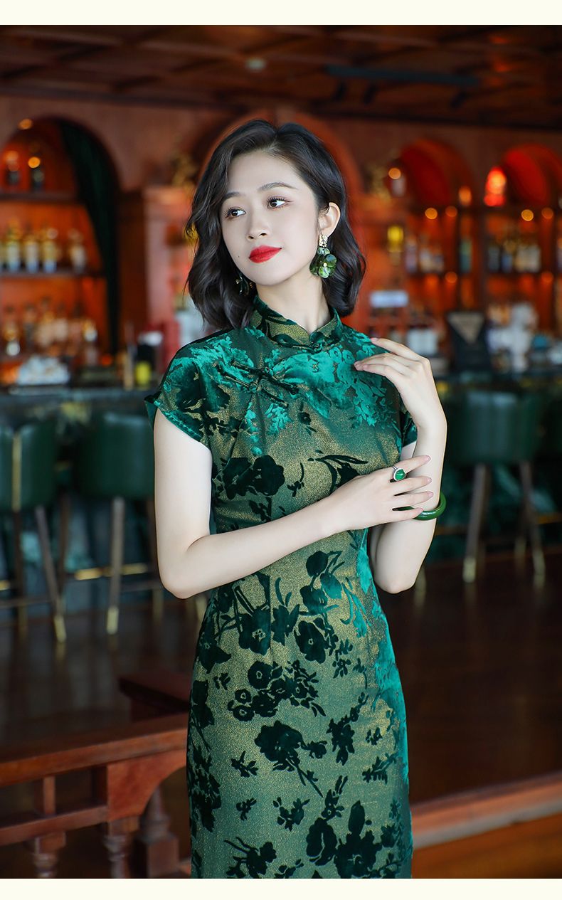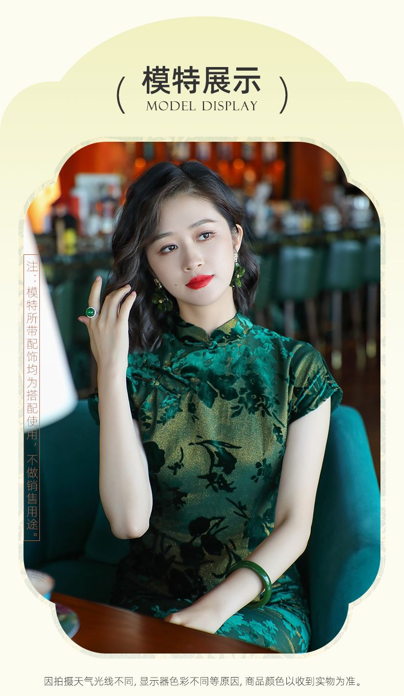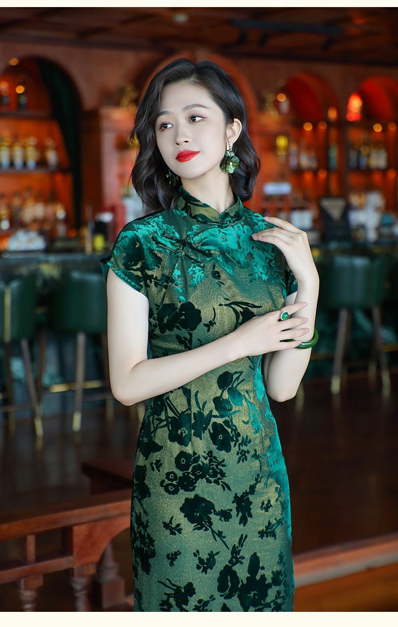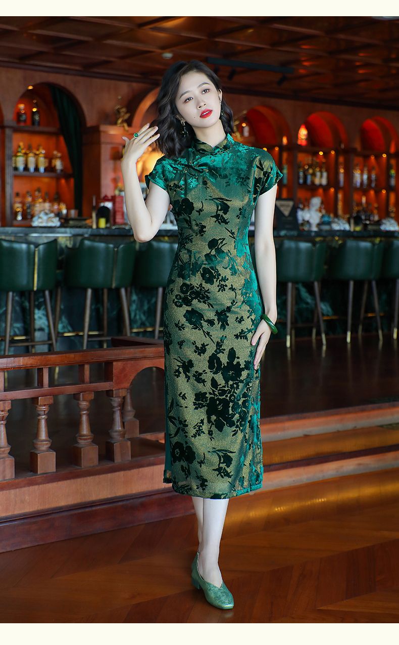 Emperor green elegant temperament cheongsam new retro Chinese style daily improvement mother dress 24287