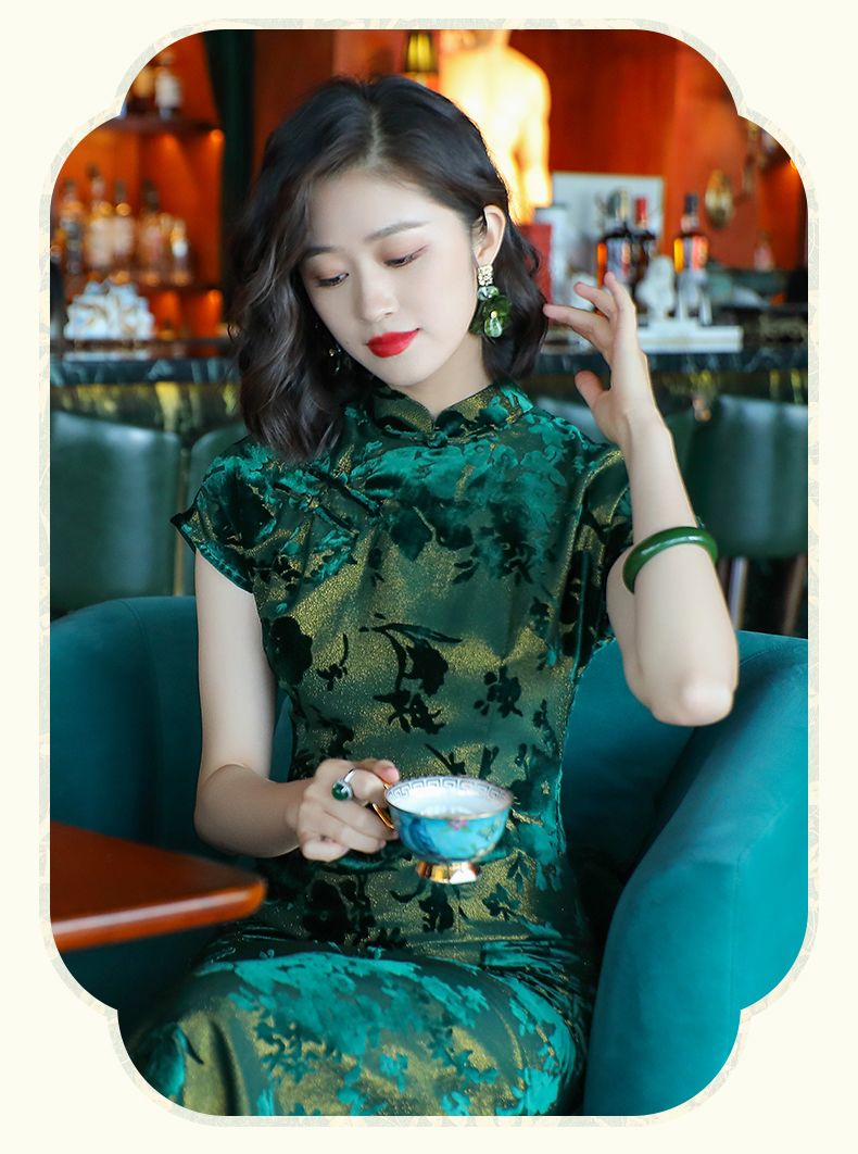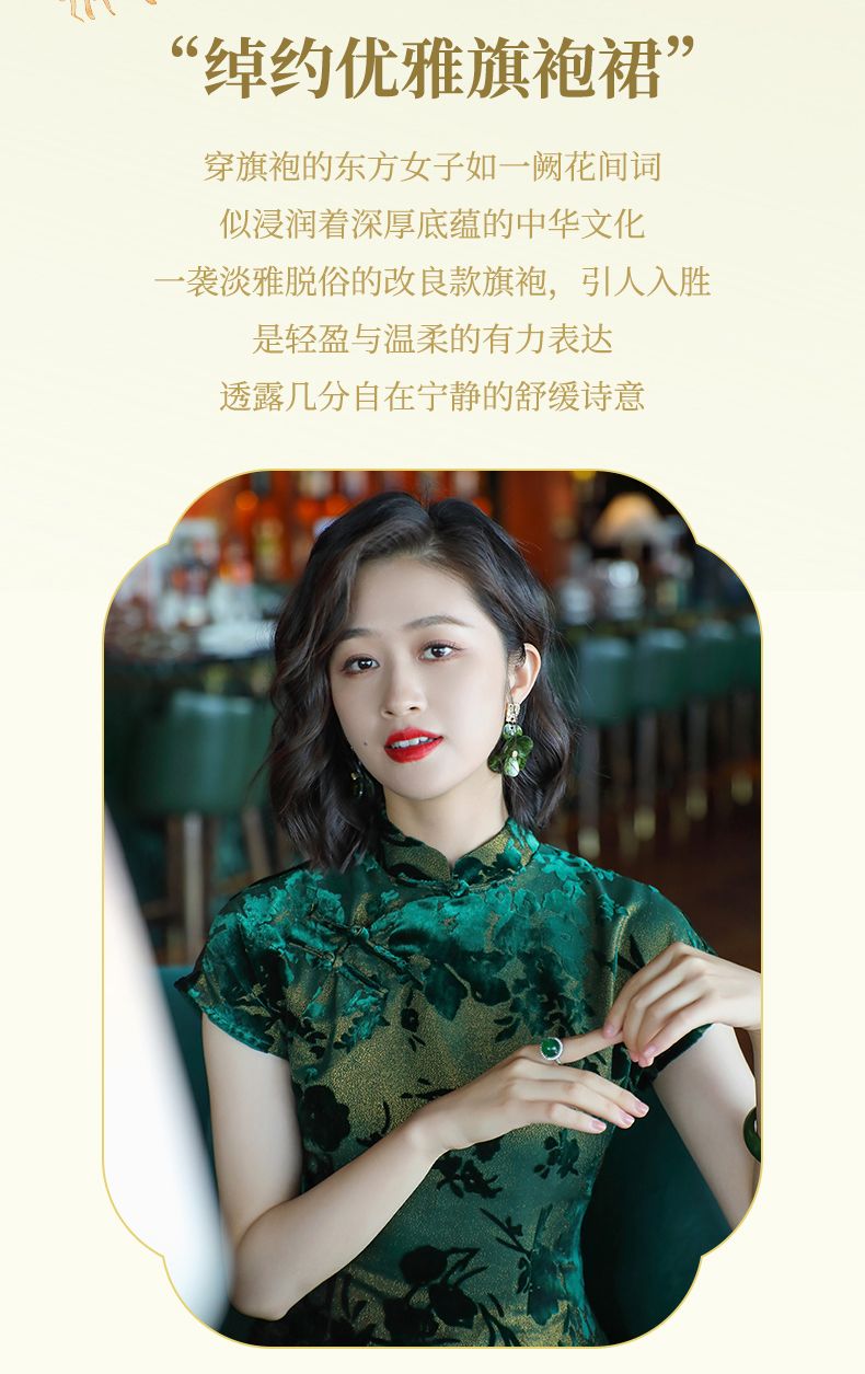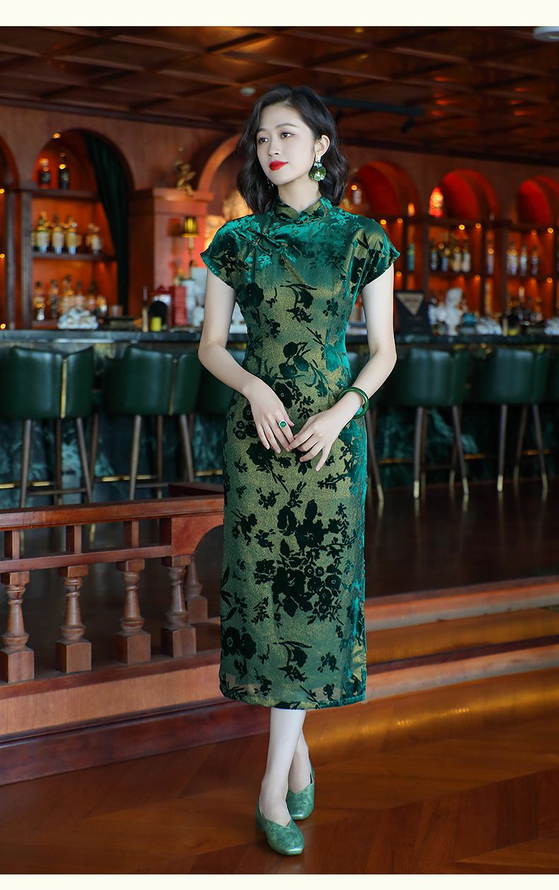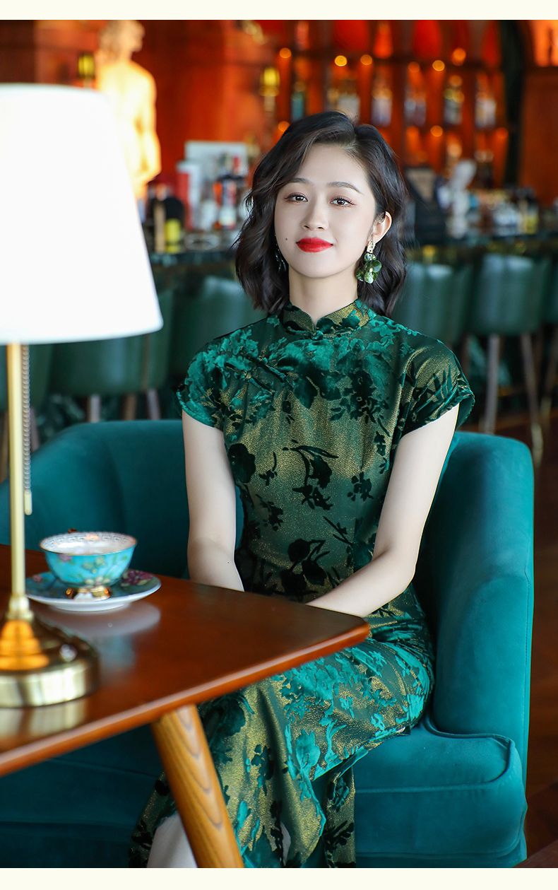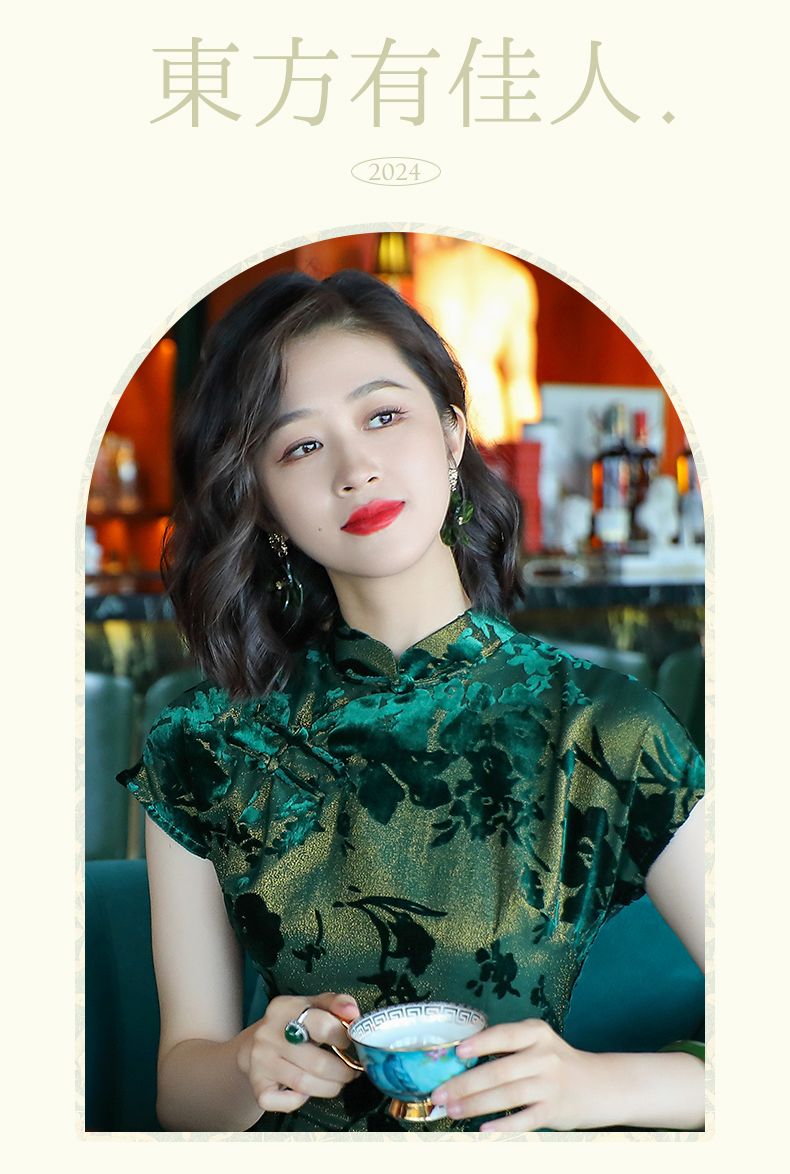 Emperor green elegant temperament cheongsam new retro Chinese style daily improvement mother dress 24287