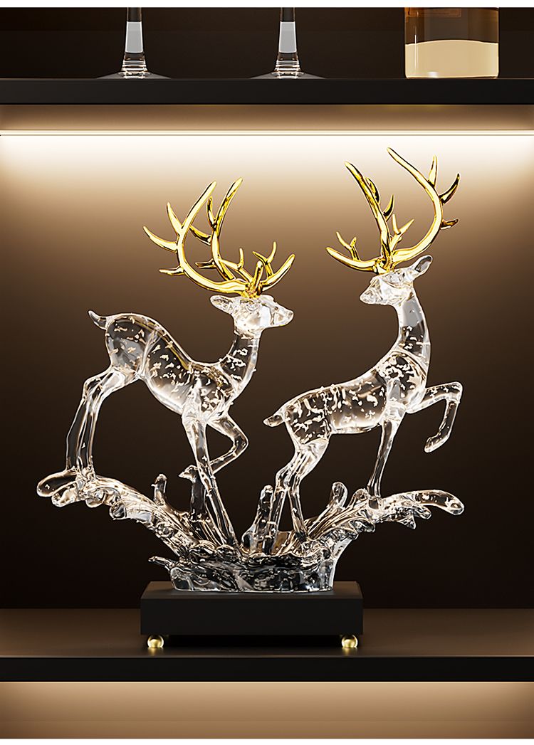 Fengsheng Shuiqi Lucky Deer Ornament Light Luxury High-end Sense Living Room Entrance Wine Cabinet TV Cabinet Decoration Housewarming Gift Lucky Gallery