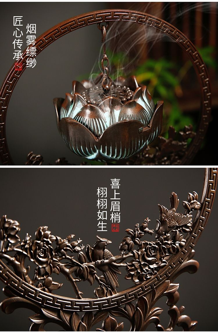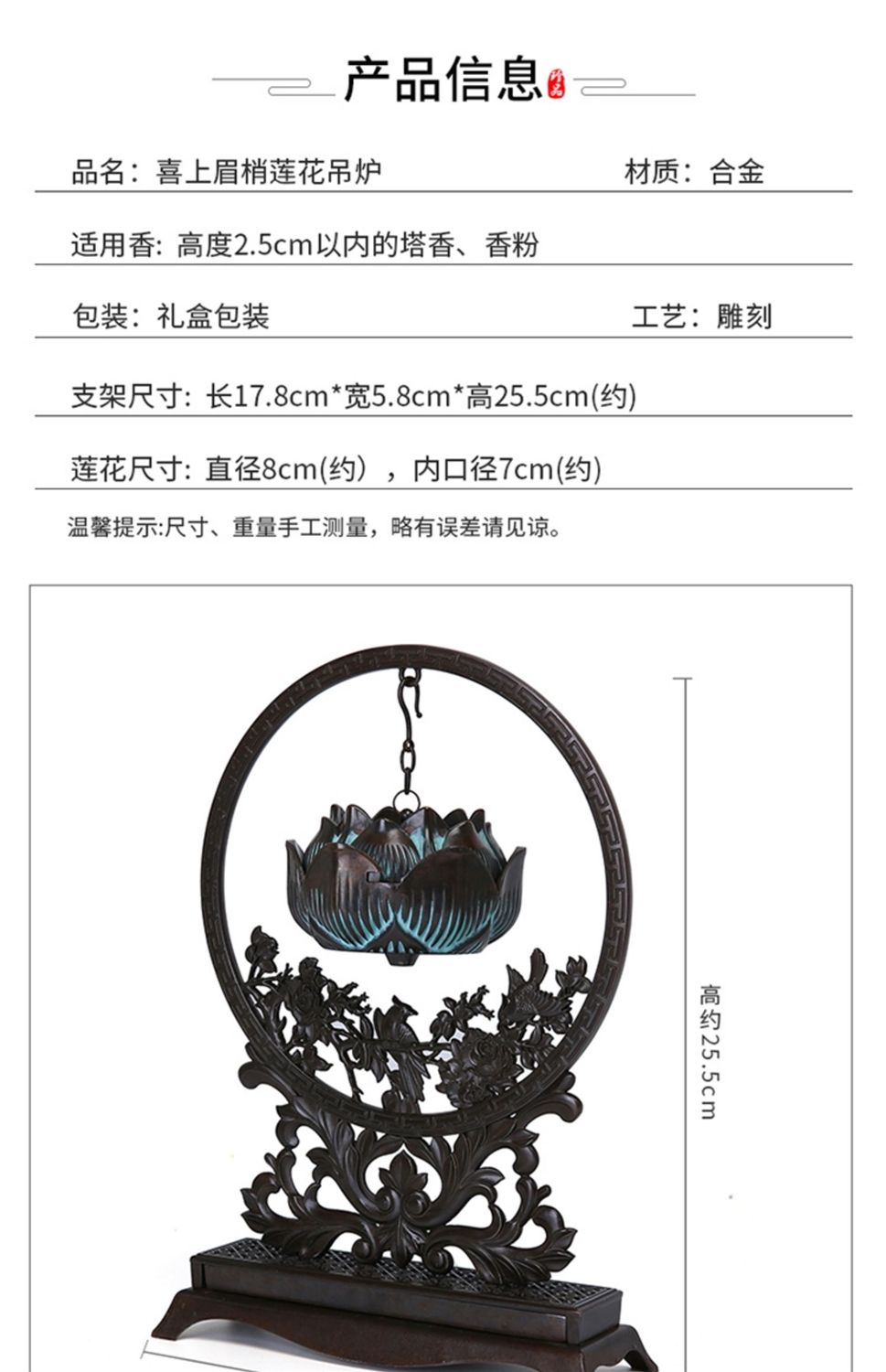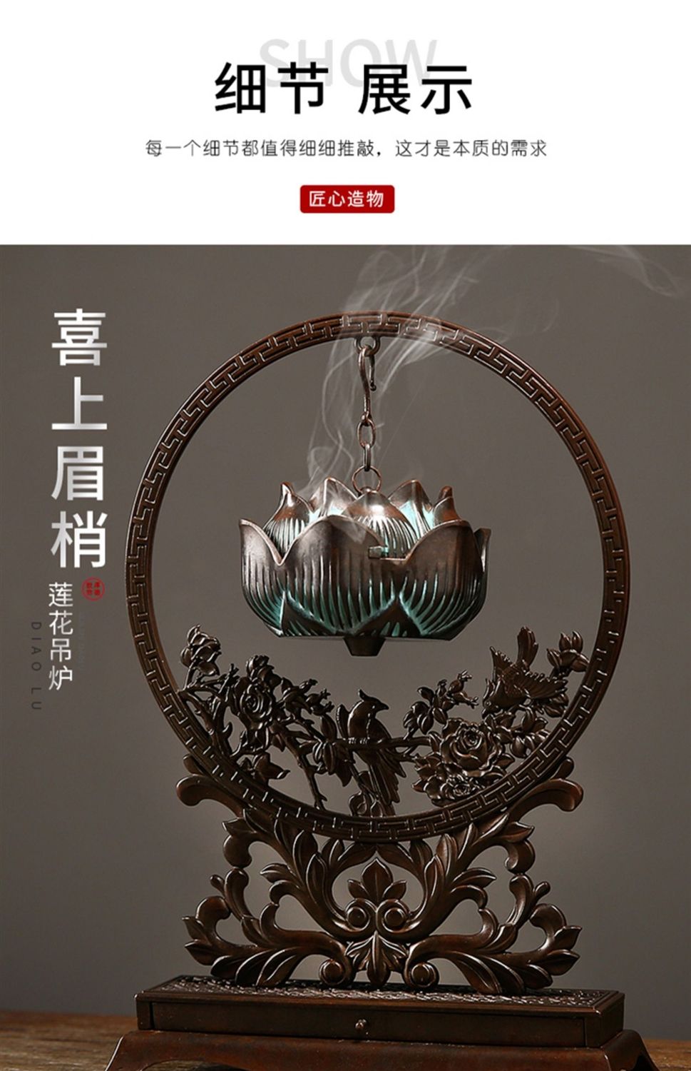 Material: Alloy; Style: Retro Nostalgia; Origin: Zhonglu; Province: Fujian Province; City: Quanzhou City; Applicable Space: Room /other; Color Classification: Happy Eyebrow + [Lotus Hanging Furnace] + [2H Ya Bai 40 Plates] Happy Eyebrow + [Lotus Hanging Furnace] + [2H Agarwood 40 Plates] Happy Eyebrow + [2H Agarwood 40 Plates] Happy Eyebrow + [Lotus Hanging Furnace] [Send Trial Sandalwood] Happy Eyebrow + [Lotus Hanging Furnace] + [2H Sandalwood 40 Plates]; Item Number: -00110