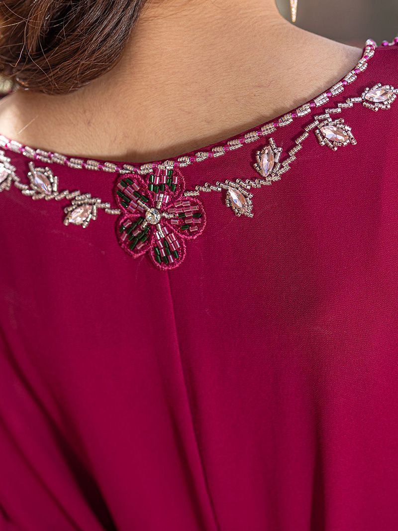 Discover the Elegance of Our Burgundy Handmade Beaded Dress