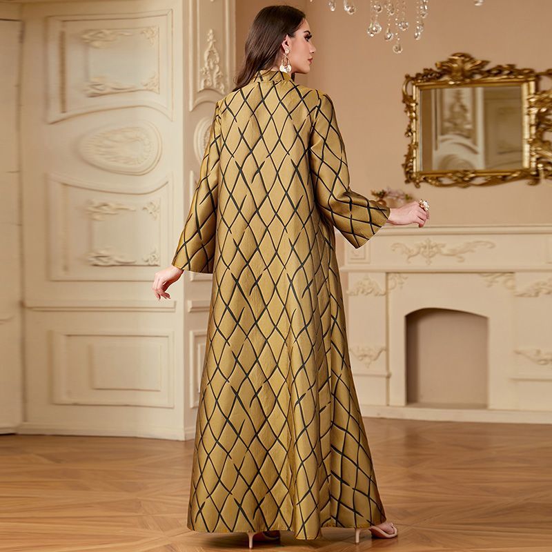 Ready to elevate your wardrobe? Order your Middle East V-neck long dress today and embrace the beauty of ethnic jacquard in your fashion choices. Experience the blend of tradition and modern style – get your dress now and shine on your next special occasion!