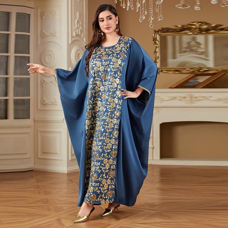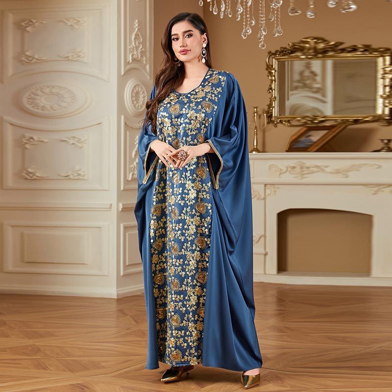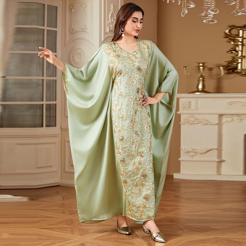middle Dubai Heavy Industry Embroidery Dress - 100kg Loose Bat Sleeves Middle Eastern Women's Robe