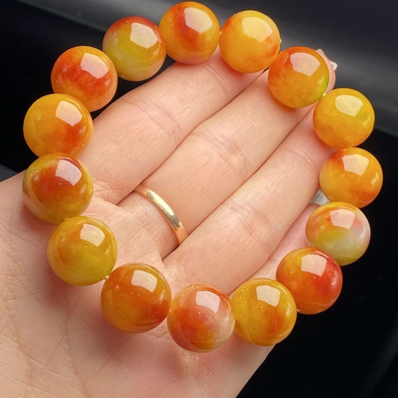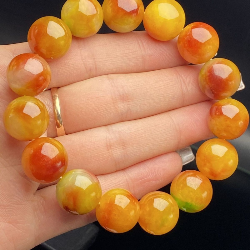 Myanmar Jadeite Bracelet - Laokeng Ice Glutinous Seed Full Color Yellow Red 14mm Round Bead
