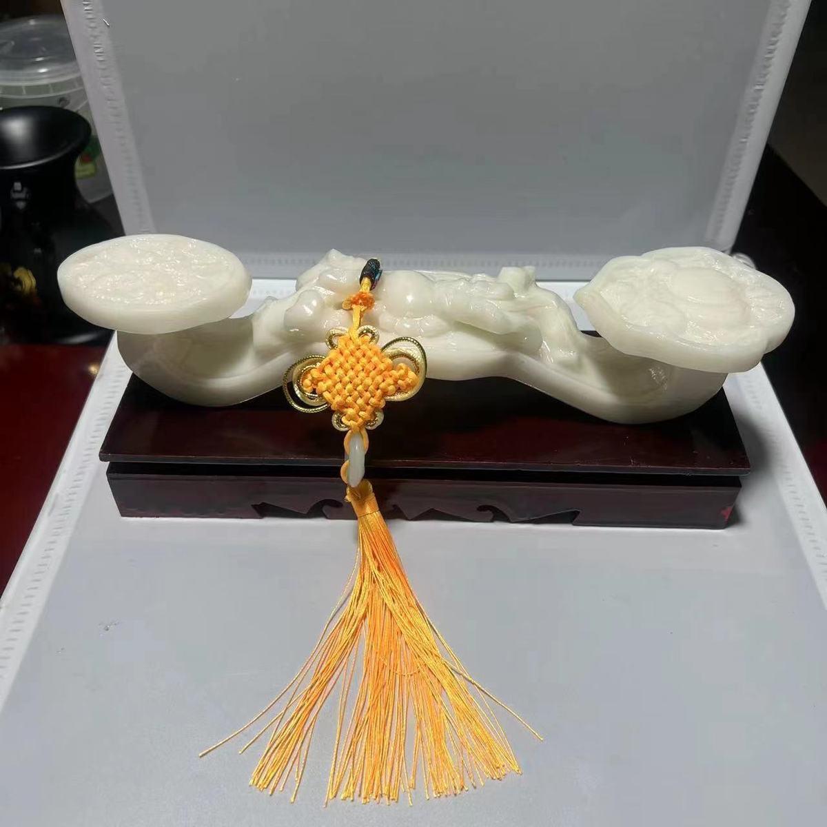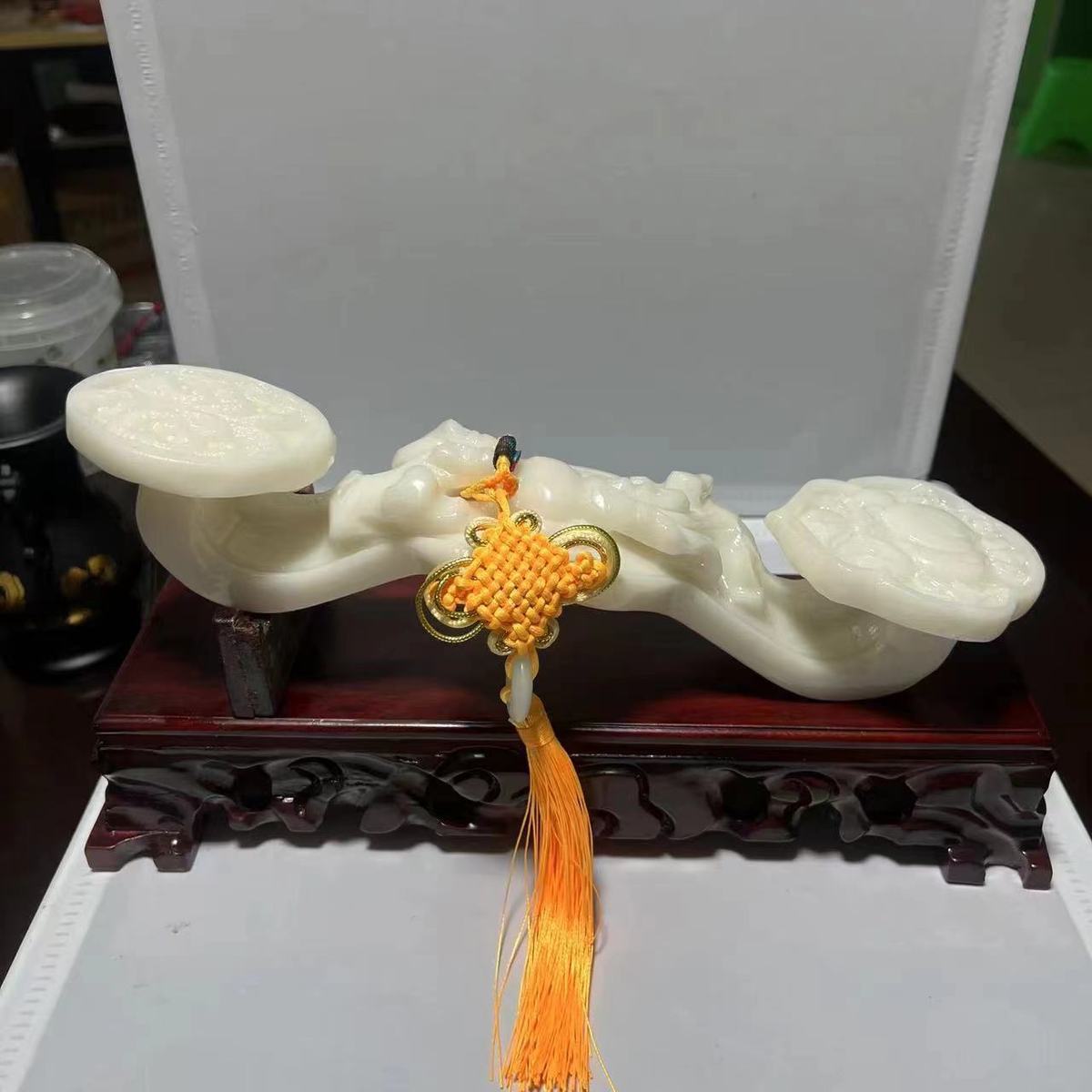 Natural jade jade Ruyi ornament, living room porch housewarming wine cabinet, new home decoration gift opening Lucky Gallery
