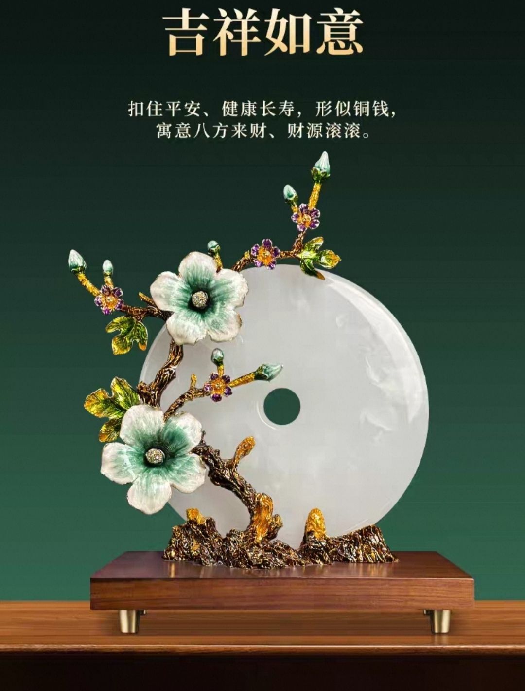 New Chinese enamel color jade safety buckle ornament high-end living room wine cabinet entrance handicrafts opening housewarming gift Lucky Gallery