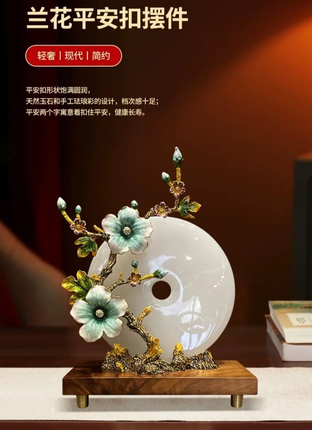 New Chinese-style Zen enamel color orchid jade safety buckle ornament, high-end sense of decoration, living room TV wine cabinet entry entrance handicraft opening housewarming gift ornament. Reminder: Natural jade, each piece of jade has a natural texture, the pattern of each piece of jade is different, not defective, thank you for your understanding.