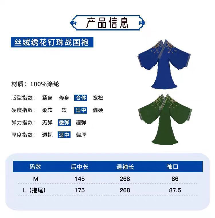 Elegant Aesthetics: The beautiful patterns and colors of the Warring States robe set will not only make you stand out but also evoke a sense of historical charm.