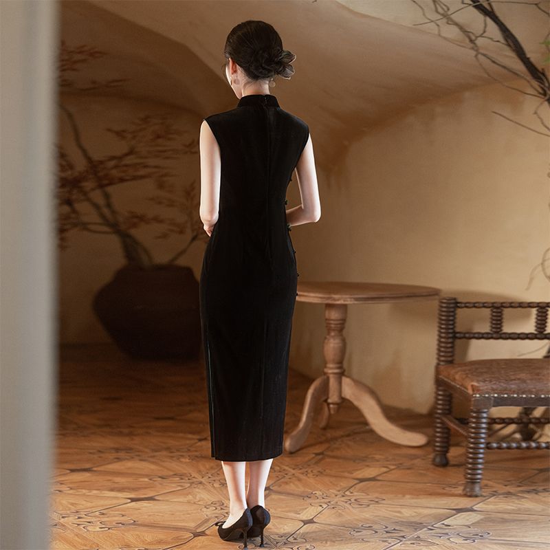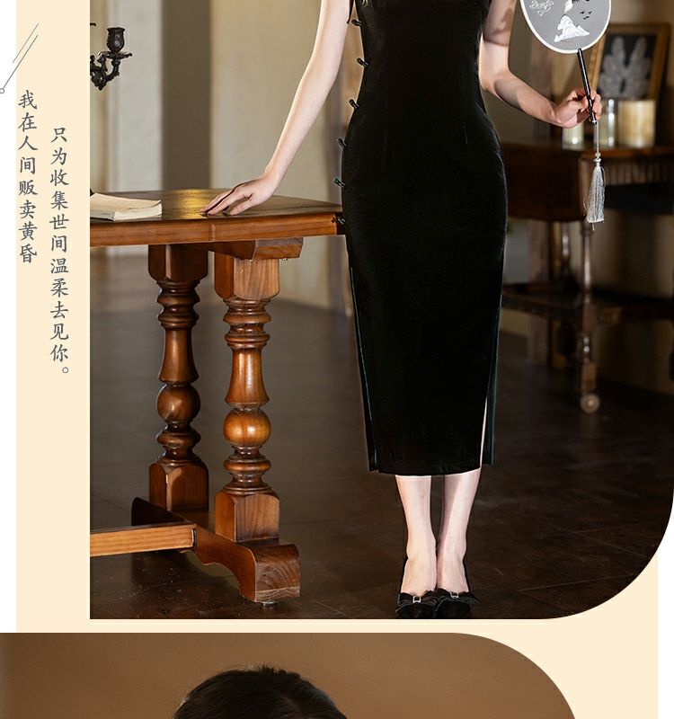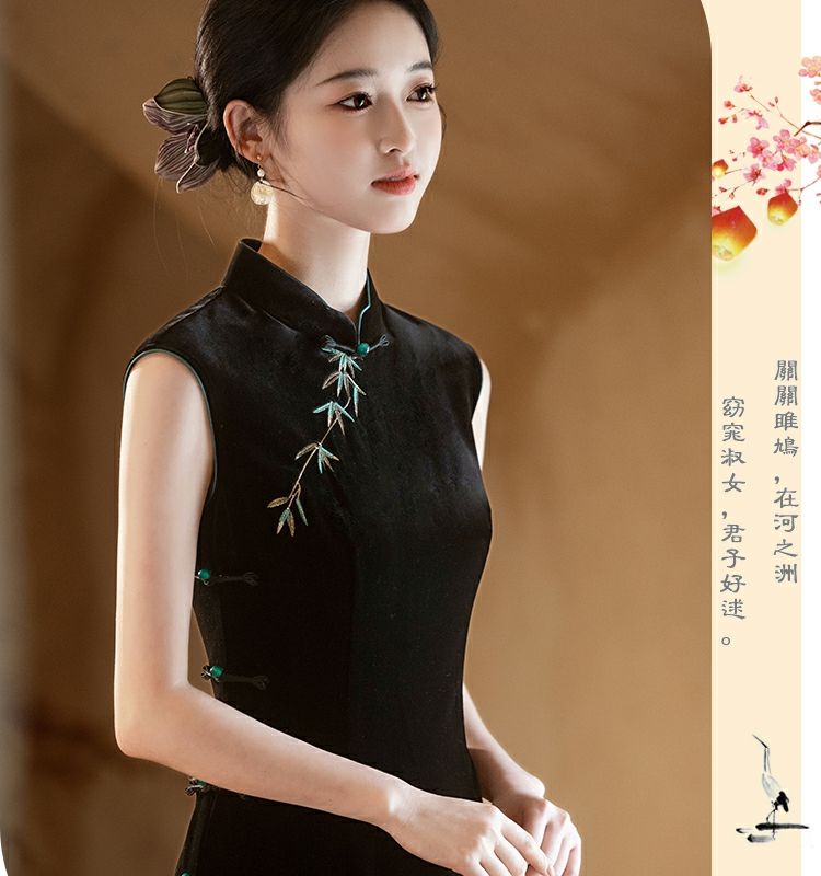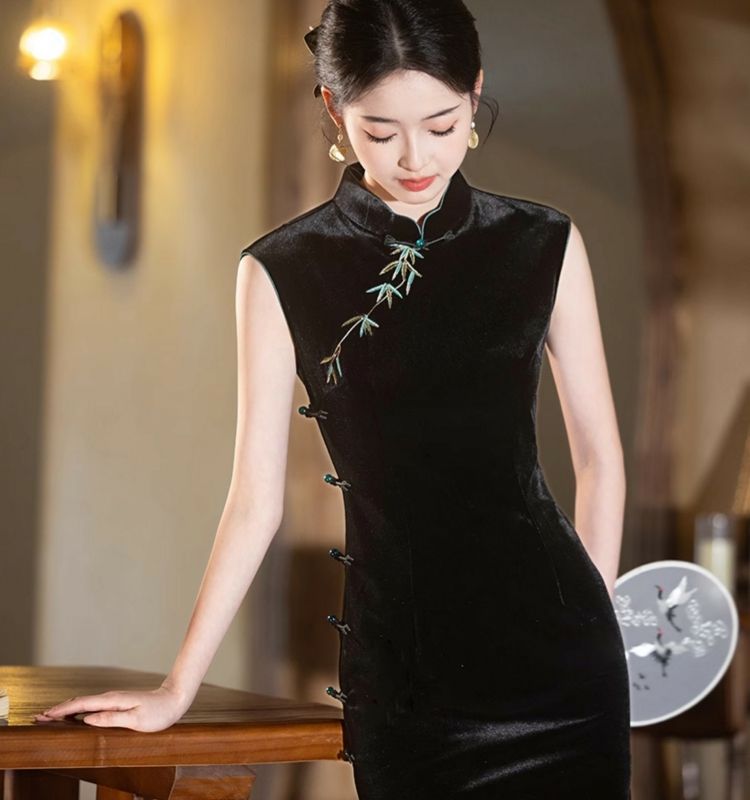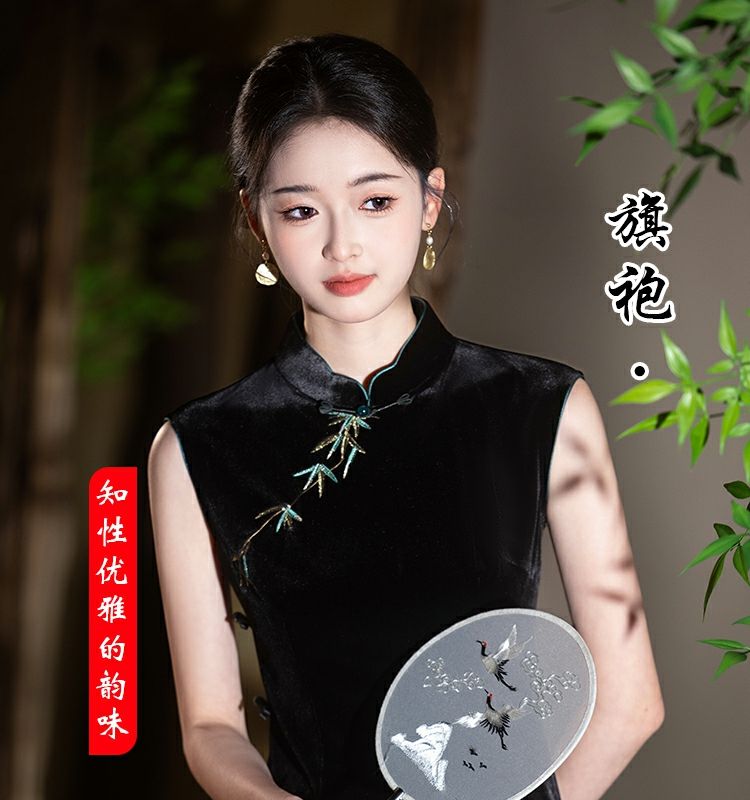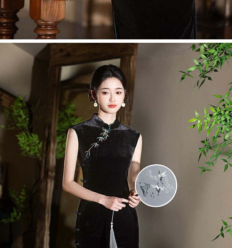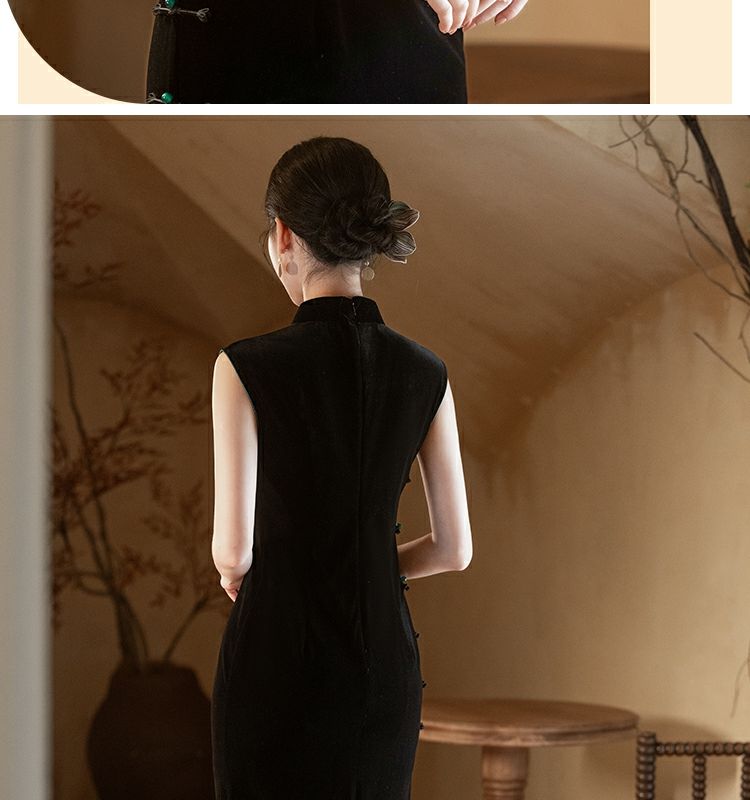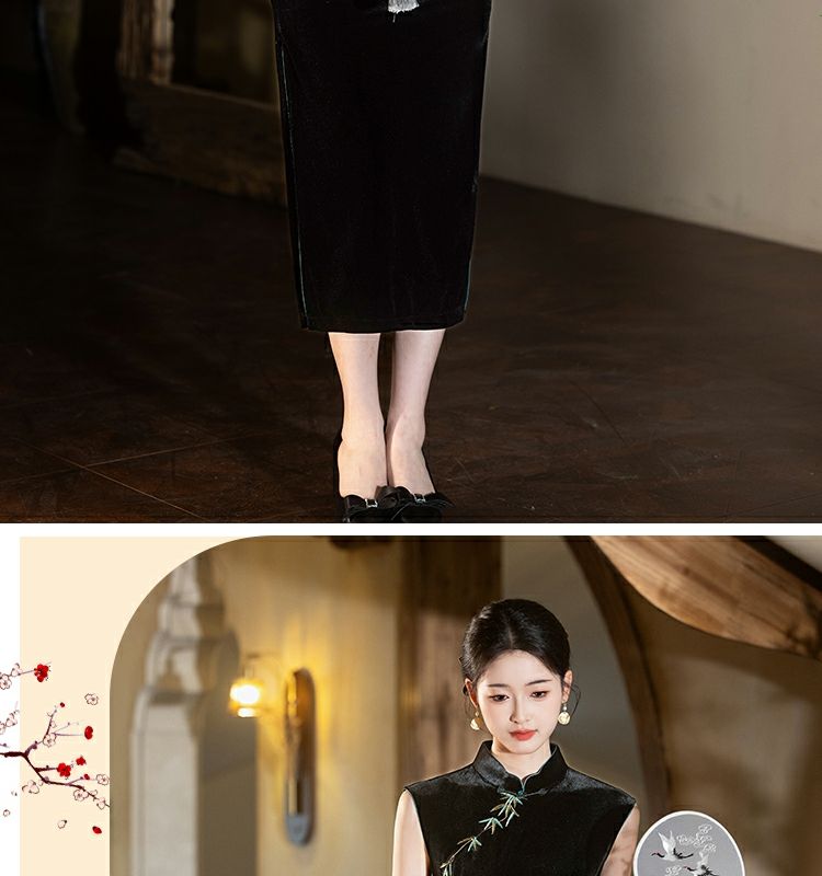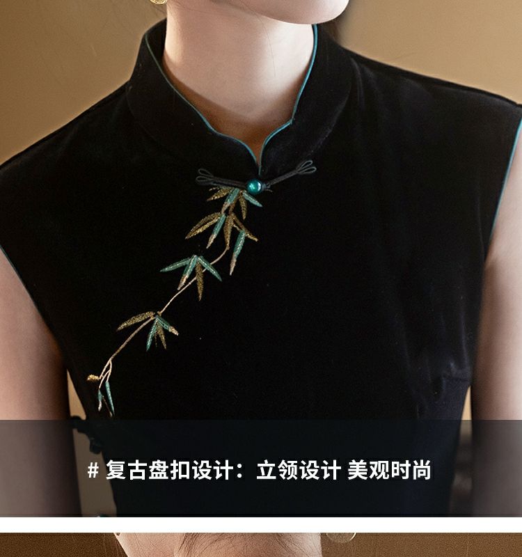 Retro Republic of China style velvet sleeveless cheongsam female old Shanghai Chinese high-end sense daily slim temperament embroidery young