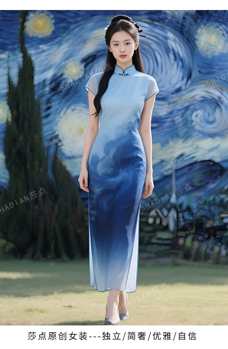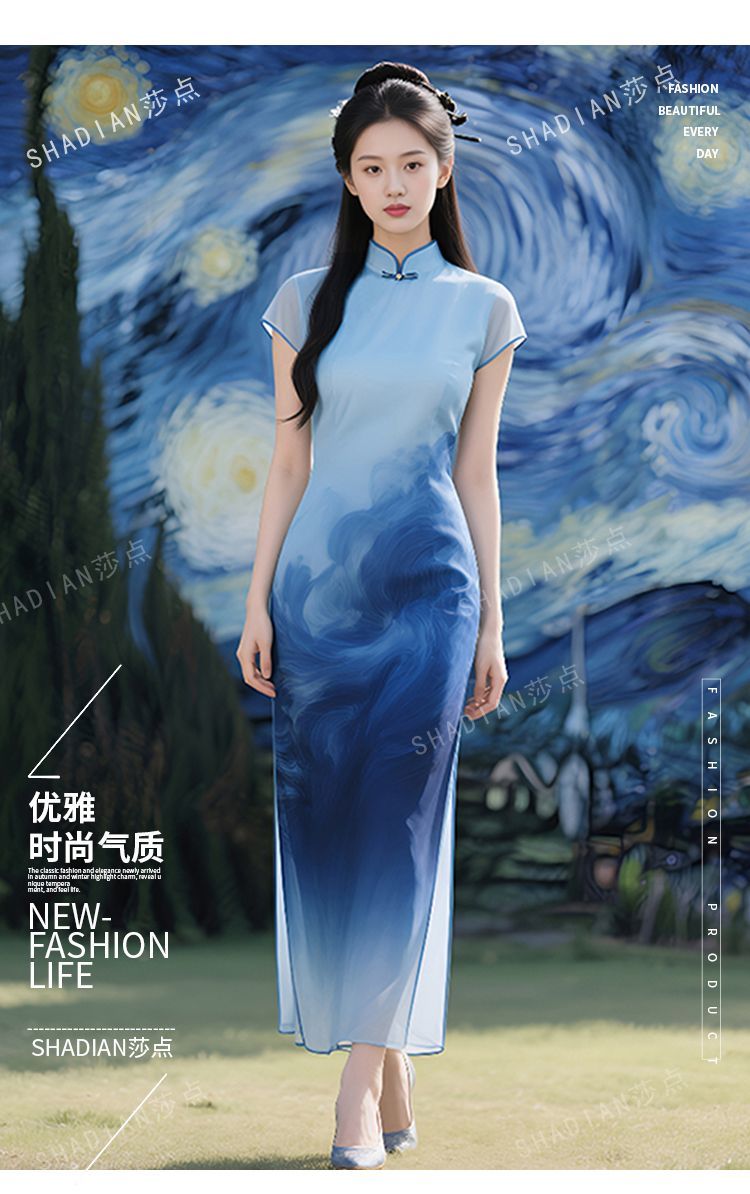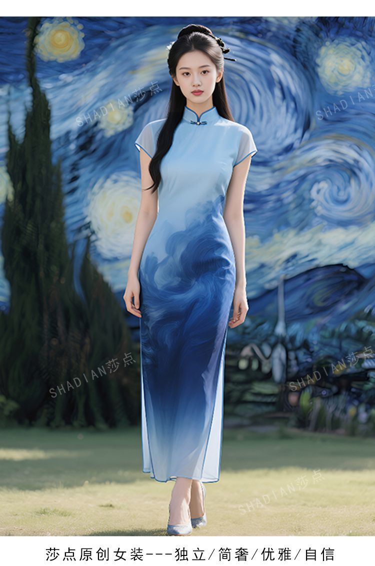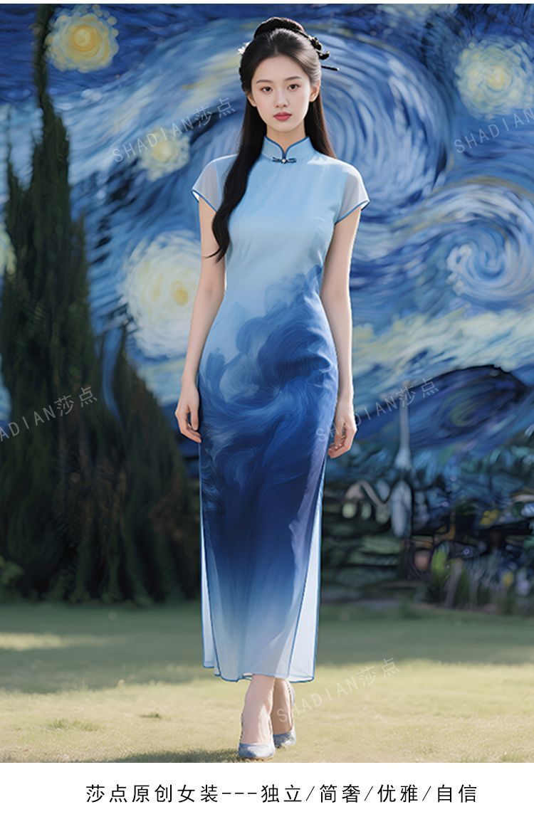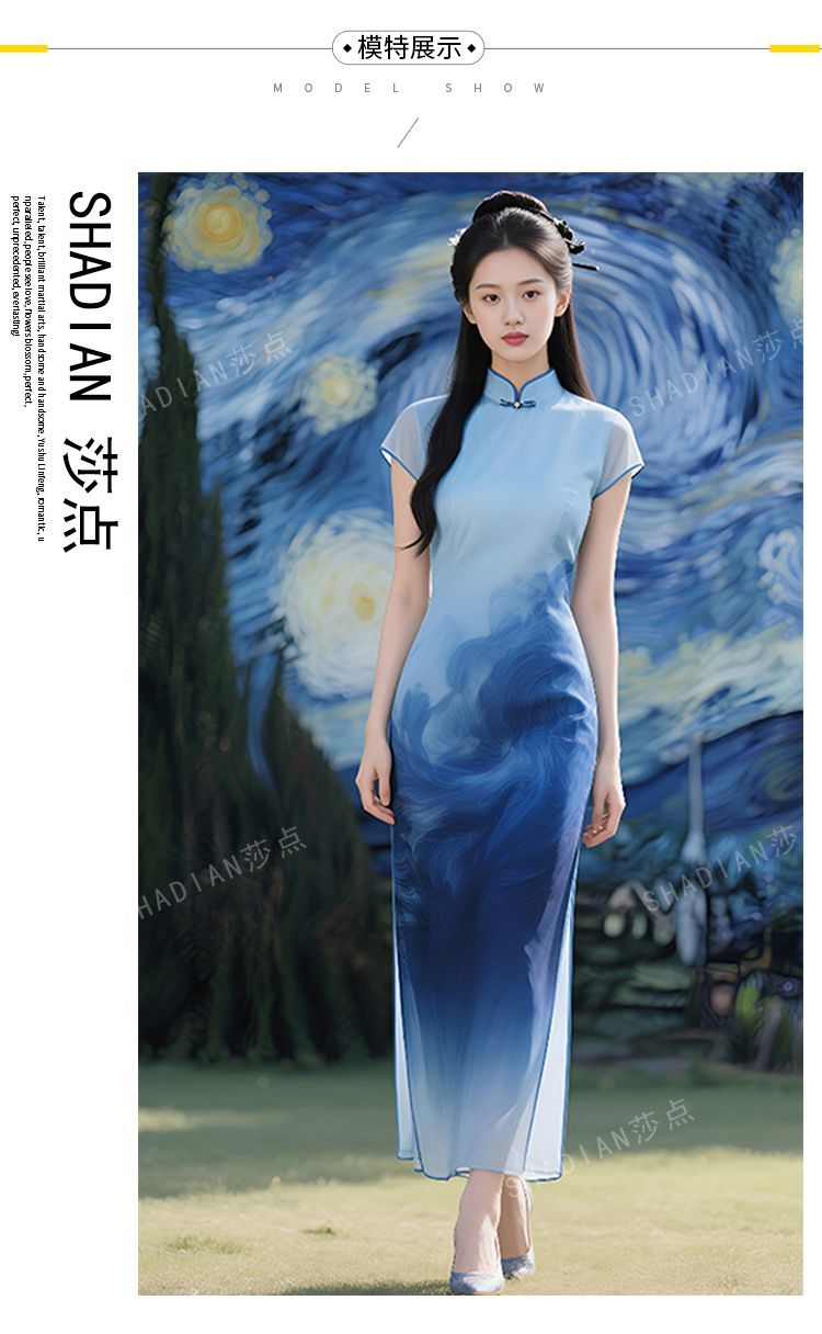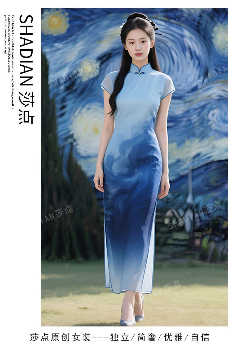 Shadian original summer new catwalk performance high-end temperament cheongsam skirt elegant new Chinese style improved national style dress