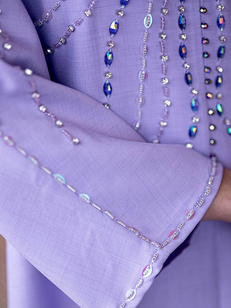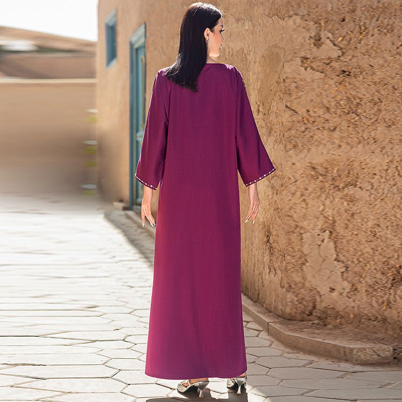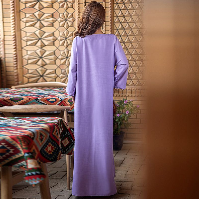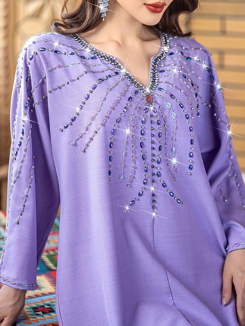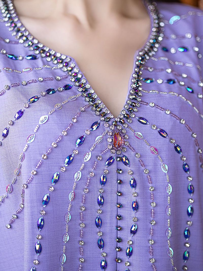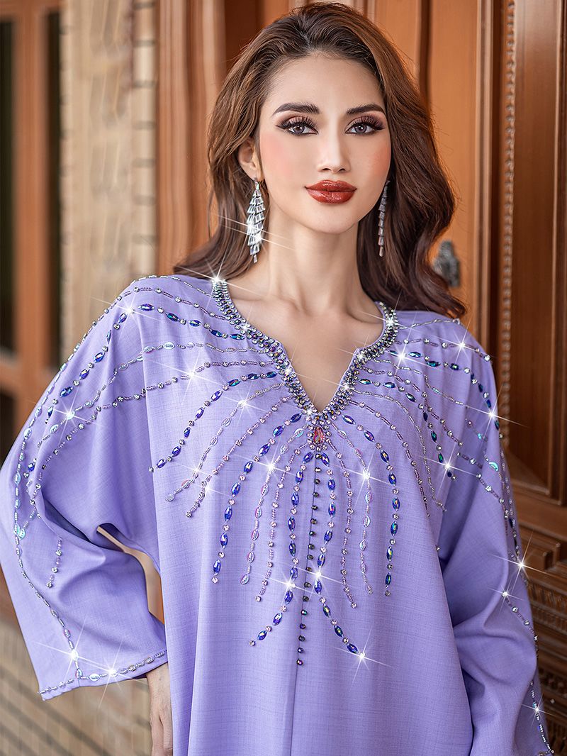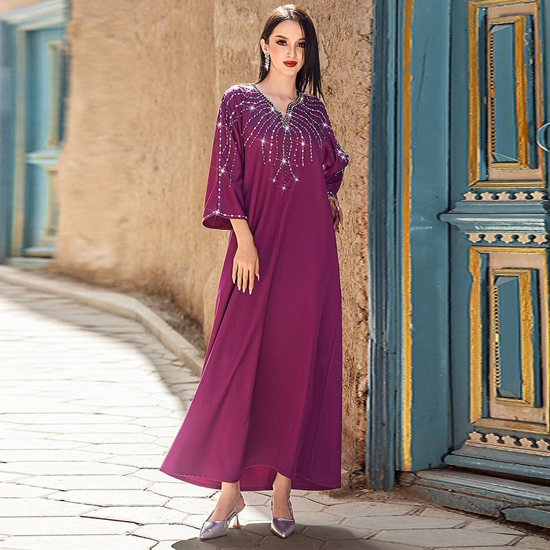 Turkey Dubai Lilac Purple Celebrity Style Long Sleeve Dress Xinjiang Women's Handmade Sewn Rhinestone Malay Robe