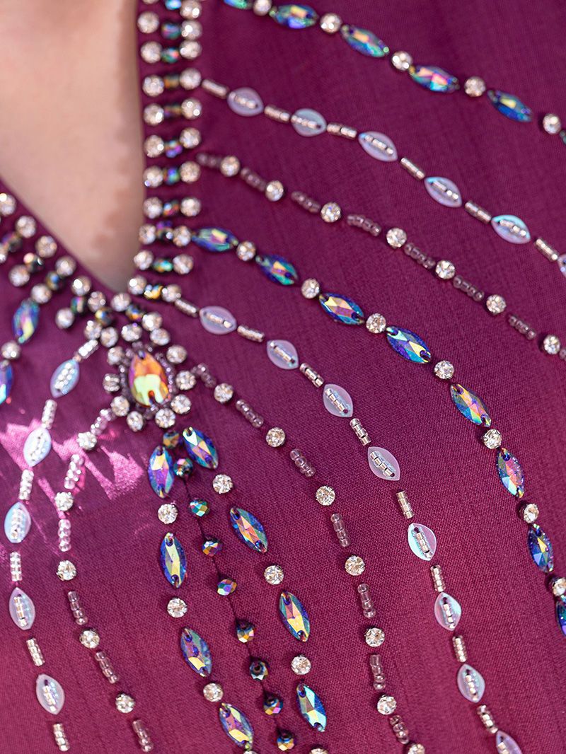 Step into elegance with our Celebrity Style Long Sleeve Dress, a stunning garment that combines traditional craftsmanship with contemporary design. Handcrafted in Xinjiang, this elegant lilac purple dress is perfect for those who appreciate quality and style. Adorned with sparkling rhinestones, it mirrors the glamour of celebrity red carpets while offering comfort and sophistication.