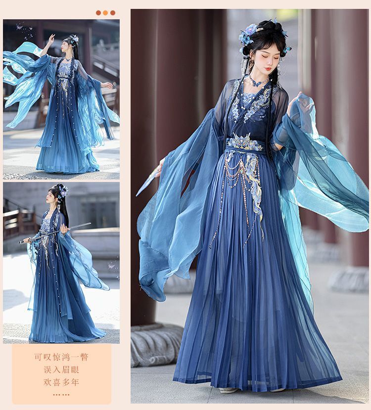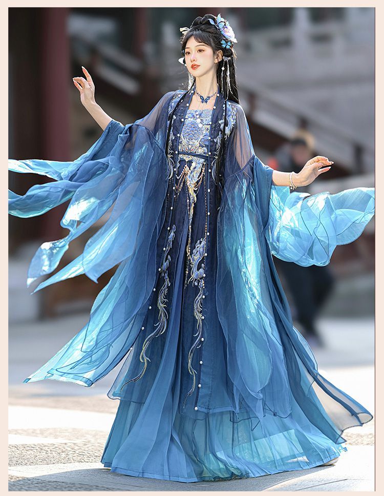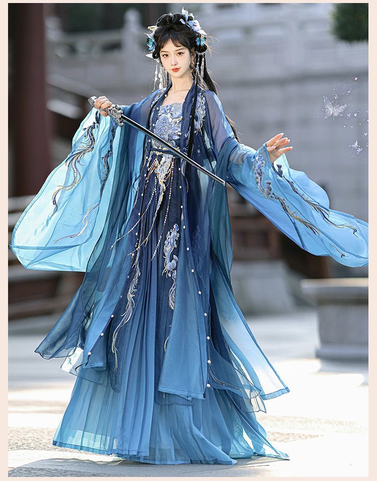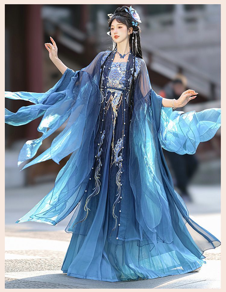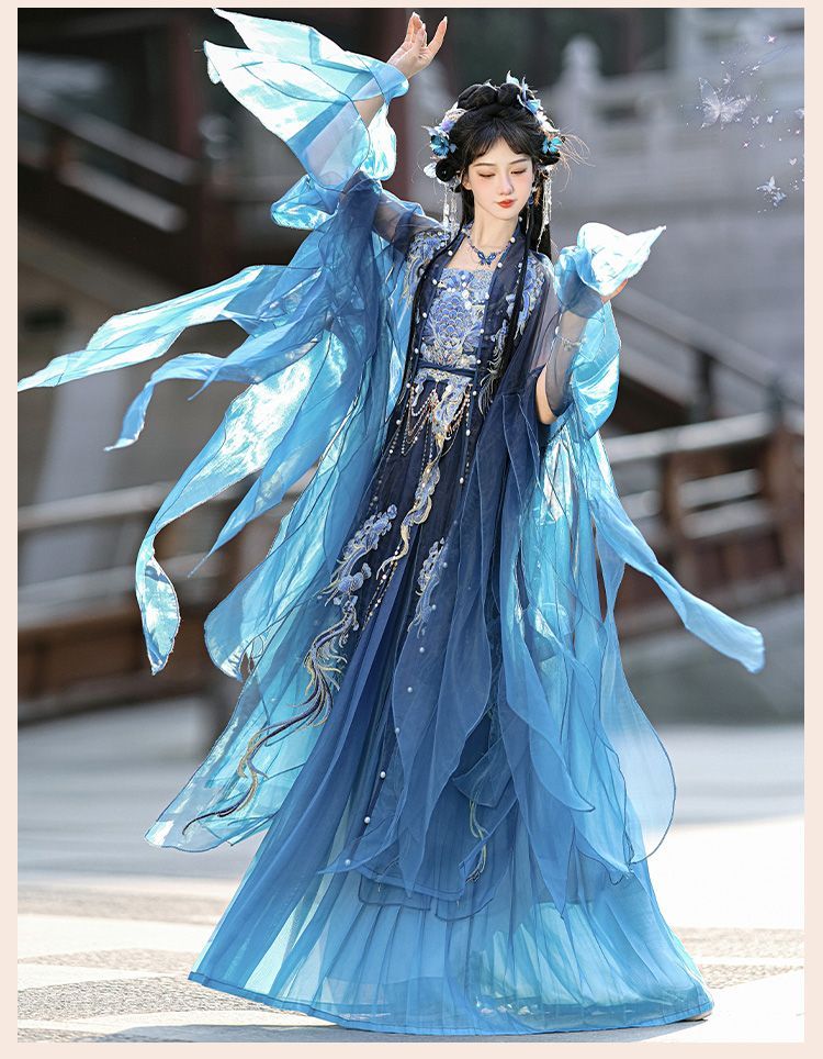 Step into a realm of elegance and cultural beauty with the Weiyang Palace Hanfu Fairy Skirt Set. This exquisite ensemble embodies the essence of traditional Chinese attire, inspired by the enchanting fashion of the Southern and Northern Dynasties. With its intricate embroidery and detailed craftsmanship, this Hanfu Fairy Skirt Set is not just a clothing item; it's a statement piece that transforms any occasion into a fairytale.